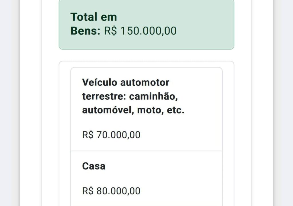 Dados oficiais da Justiça Eleitoral apontam um crescimento significativo no patrimônio declarado pelo Verador Subtenente Eliabe entre as eleições de 2018 e 2024. Na disputa para deputado estadual, em 2018, Eliabe informou à Justiça Eleitoral bens que totalizavam R$ 150 mil, concentrados principalmente em um veículo avaliado em R$ 70 mil e uma casa estimada em R$ 80 mil.